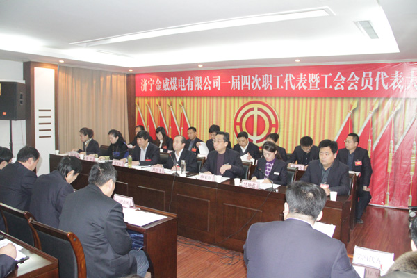1月27日,金威煤电一届四次职工代表暨工会会员代表大会在公司四楼会议室召开,来自各分(子)公司和机关部室的81名职工代表和6名列席代表参加了大会。大会由公司董事长、党委副书记肖作飞同志主持,总经理张玉标同志作了行政工作报告,工会主席吴艳蕊同志作了工会工作报告。