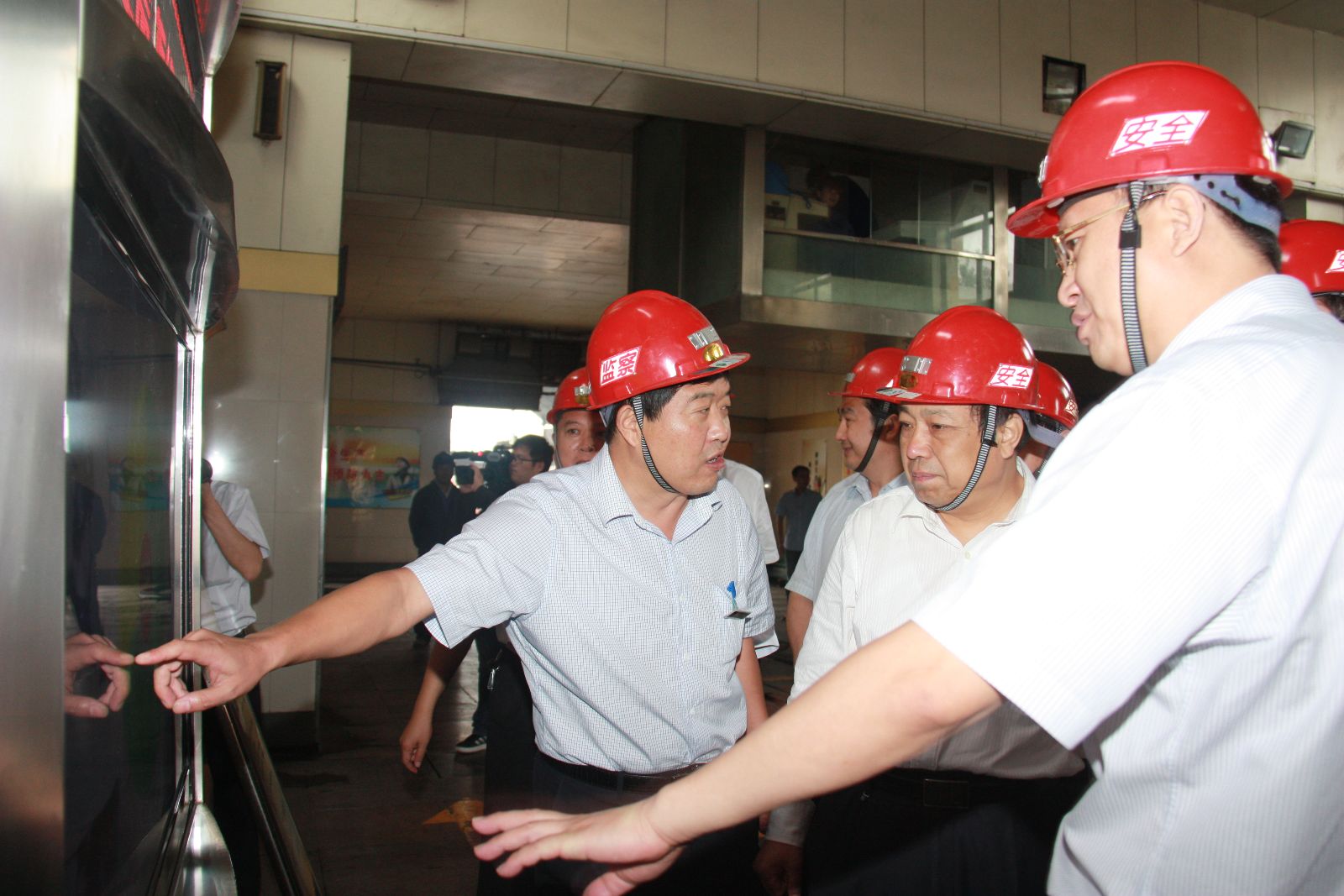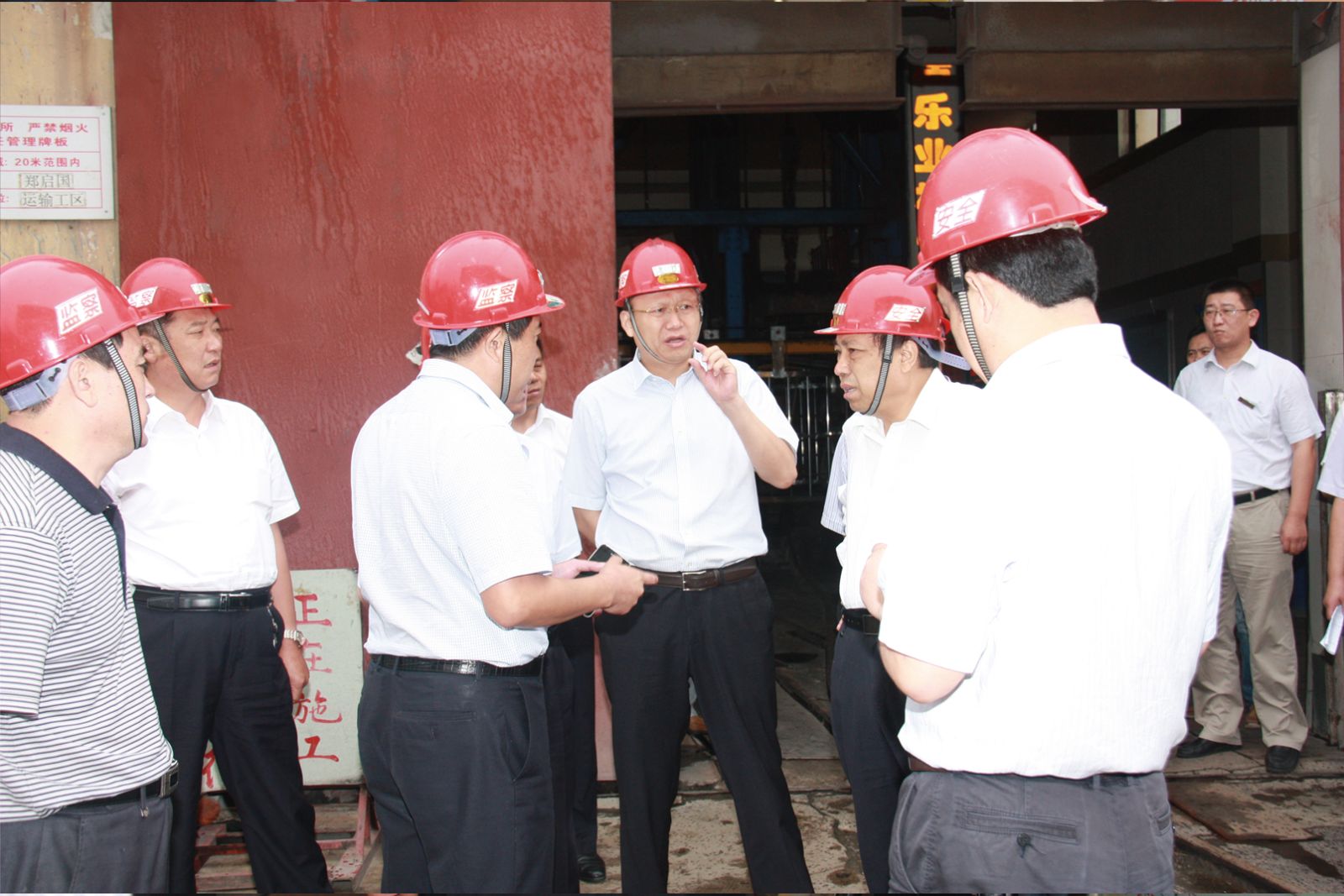 会议结束后,周洪在市政府办公室副主任徐锋、市安监局局长陈鲁起、市煤炭局局长于海燕、集团公司董事长虢洪增、公司总经理李合军等陪同下先后到太平煤矿安全文化长廊、井口等候室、副井口等场所实地检查指导。