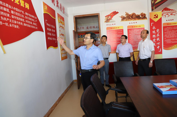 座谈后,袁歆一行到采掘楼党员活动室现场实地检查指导过硬支部建设情况,对过硬支部建设相关文件、部分党支部的"三会一课"记录等资料进行了检查指导。
